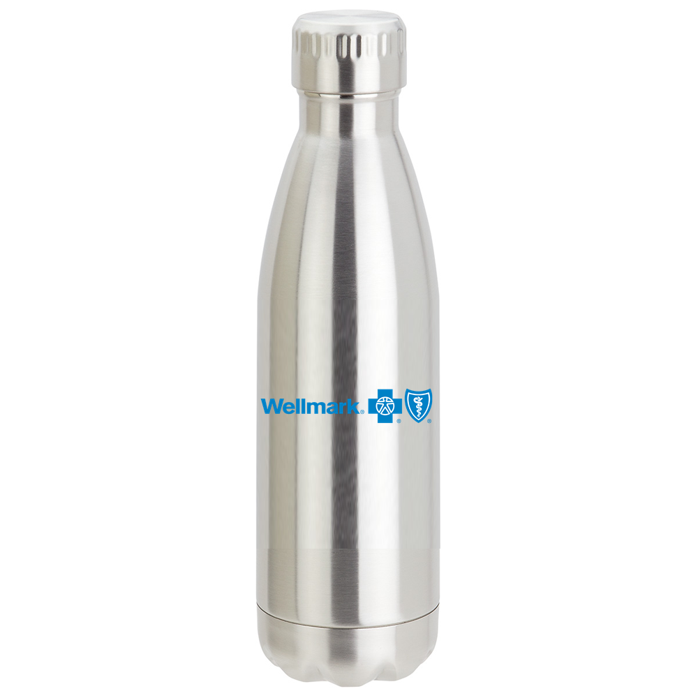 17oz. bottle is double wall stainless steel with double wall vacuum insulation. The Wellmark logo is imprinted on one side.
