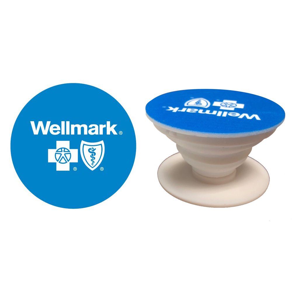Bold, classy, laser engraved beauty, the Tablet Stand Phone Holder is on-trend and on-your-phone. Sticks flat to the back of your phone, tablet or case with its rinsable, repositionable gel. Once extended, the Tablet Stand Phone Holder Grip becomes a media stand for your device, a photo or texting grip, or lower it for a video chat. The back of anyone's phone is prime real estate for any promotion, and the best part is that Tablet Stand Phone Holder can be used on almost any brand of phone or phone case. The Wellmark logo is imprinted in white.