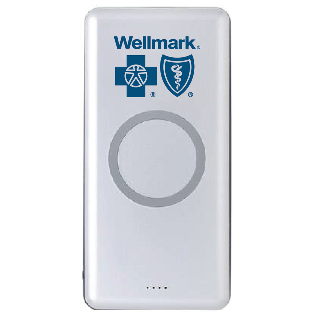 Take your wireless charging with you anywhere you go with this Qi enabled 10000 mAh power bank. If you have a compatible device, simply lay it on the power bank to begin charging. If your device is not compatible, simply use it like a traditional power bank through connection cable. The wires are being cut. Don't miss out. The Wellmark logo is imprinted on the top of the battery.
