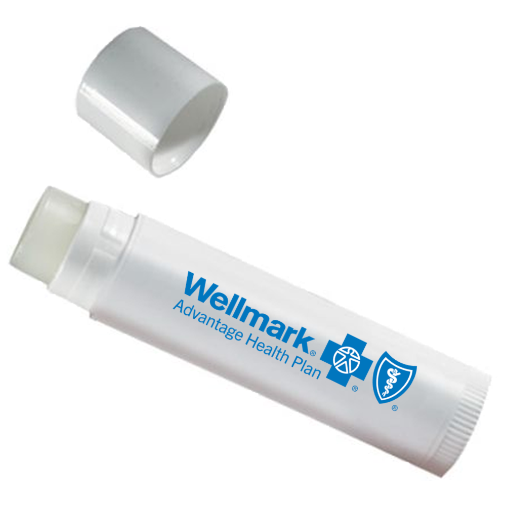 This citrus lip balm contains SPF-15 sunscreen to help protect lips with the Wellmark logo imprinted in blue.