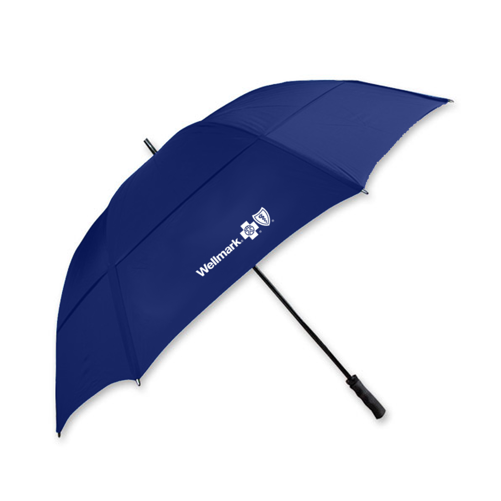 Our Wind-Resistant Golf Umbrella is designed to withstand gale-force winds (60 mph+) and to not blow inside out regardless of wind speed. This umbrella is built to last and is constructed of 190T-denier nylon, a thick, reinforced fiberglass shaft, nylon ribs and high density polycarbonate joints. Available in navy with a white Wellmark logo imprint. Includes matching nylon sleeve.